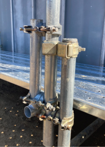 本商品は、本体と下部パイプの2つのパーツから構成されています。 基準の風速に耐える為に、クランプとクランプの間隔は、270㎜以上で固定してください。
