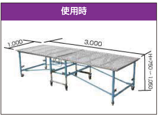 ●使用時の作業台面積が3㎡ ●折り畳み機構とキャスターで移動が簡単です。