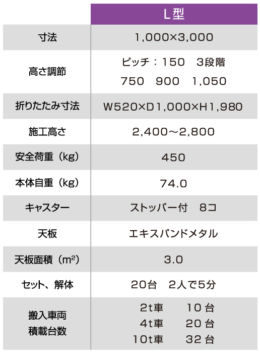 ・安全の為、作業時にはセーフティーベースのキャスターは、ストッパーをかけておいてください。 ※場内搬入時にはエレベーター、リフトの内寸に注意してください。