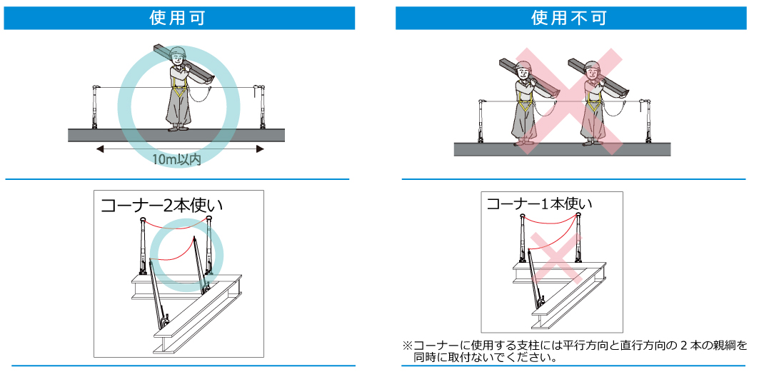 ●弊社製の親綱ロープをご使用ください。