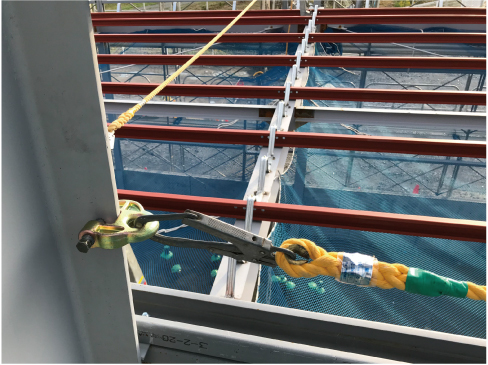 ●鉄骨H柱へ容易に取り付けることが出来ます。 ●ピースクランプ同士だけではなく、片方溶接親綱ピースや片方親綱支柱といった使用が可能です。