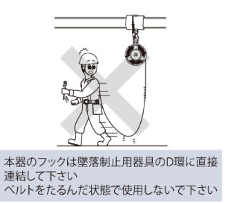 ●本製品は、建設現場などの高所作業を行う際に作業者の墜落を防止するために使用します。