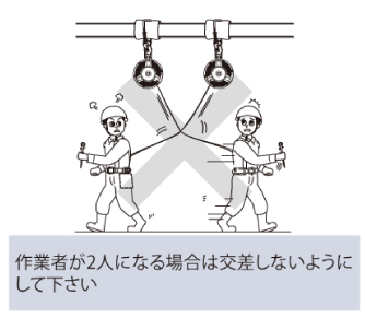 ●昇降時の垂直移動や高所作業において墜落の危険がある際に作業者の安全を確保します。