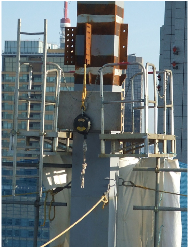 高所への昇降時に墜落制止用器具のフックを掛けるところがない場合や親綱を設置できない場合