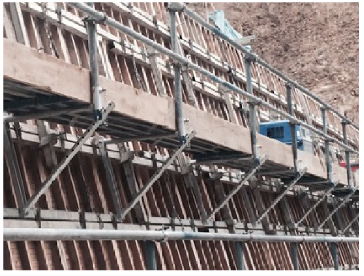 ・足場板(布板)のかぶりに注意して組み付けてください。