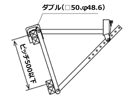 ・□50、φ48.6のバタを使用する場合は必ずダブル(2本)にしてください。1本の場合、バタ掛け金具が回転する恐れがあり危険です。