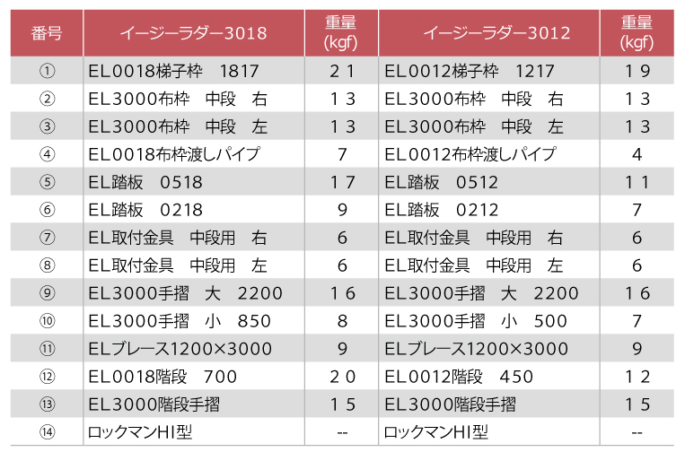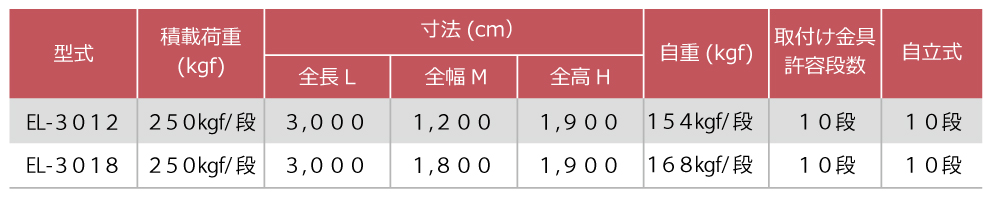 ・1段あたり積載荷重制限は150kgf(2人)です。