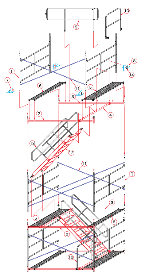 4. 階段を取付け、同じ要領で希望段数まで組み上げる。