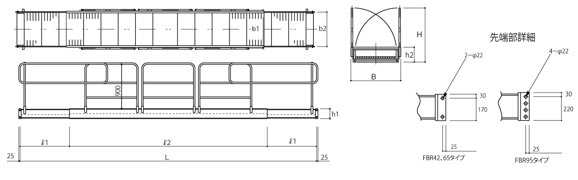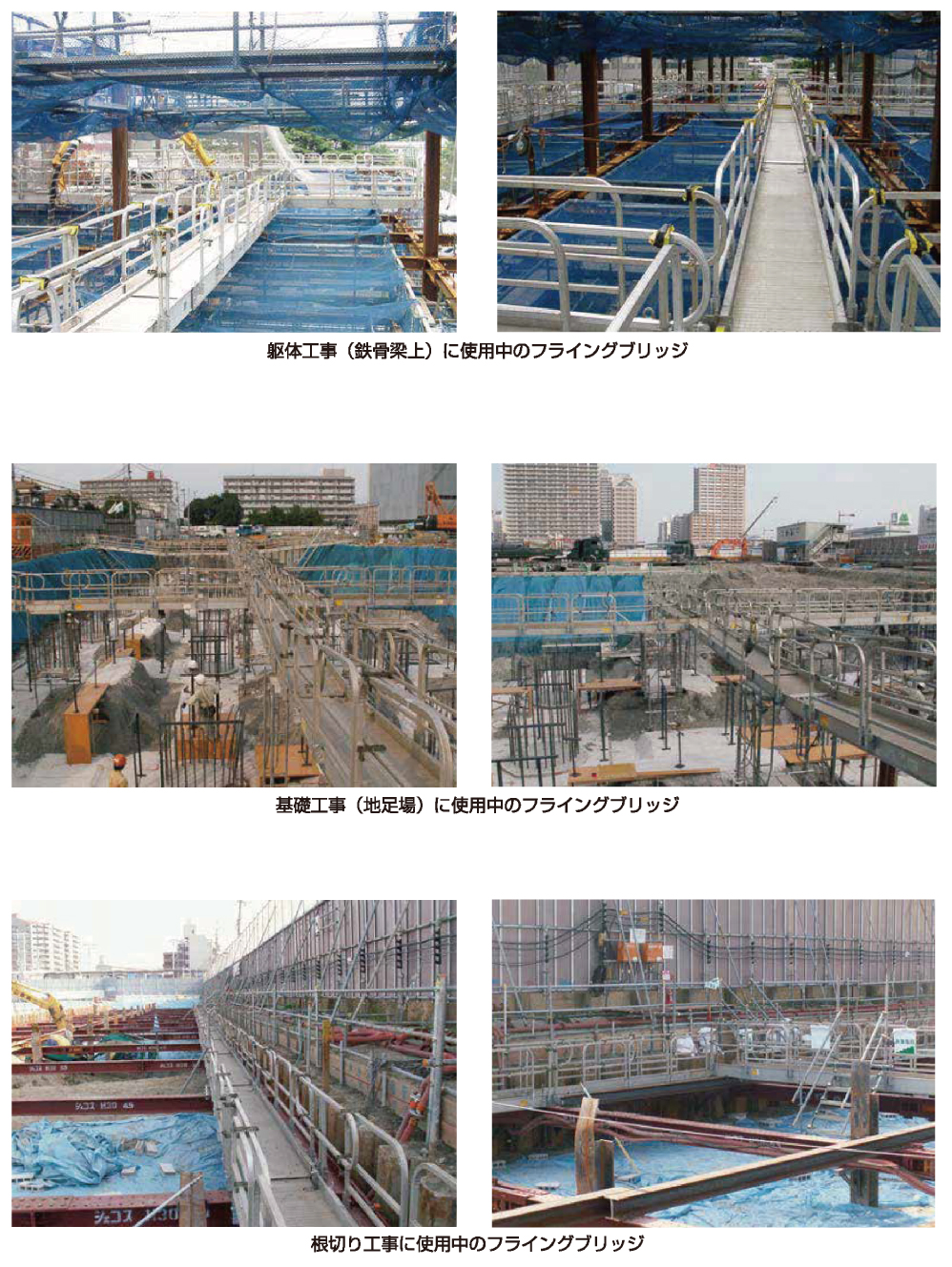 2.転落・ズレ防止のため、固定金具等によりフライングブリッジを必ず支持梁に固定して下さい。