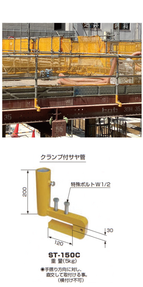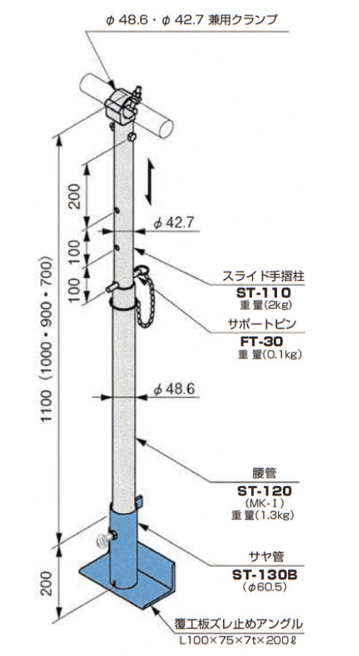 ●クローラークレーンなどのカウンターウェイトが旋回する時、手摺に干渉する場合には手摺を上下にスライドさせて高さを自由に調節できます。(700~1100mm)