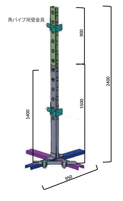 ●角パイプ用受金具を使用することで、角パイプにも対応。