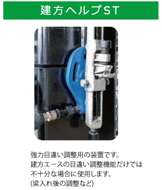 ●柱単独で目違い・レベル・倒れ調節が可能です。 ●計測装置の組み合わせにより高精度の施工が容易です。 ●建て入れ時に柱脚に吊るすことが出来るため、事前の取付が不要です。