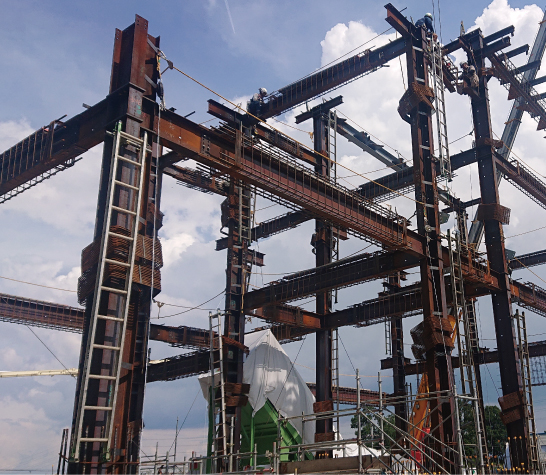 ●梯子取付金具(イージークライマー)は建築現場の鉄骨組立作業時に 仮設の昇降用通路となる梯子を鉄骨柱に取り付ける装置です。