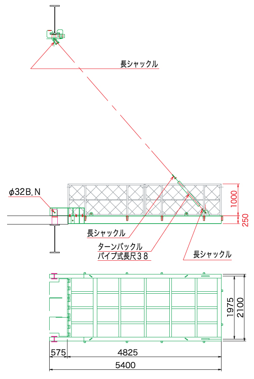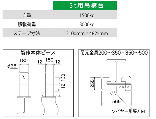 ・積載荷重制限を守ってご使用下さい。 ・吊りワイヤーの角度を45度以上で設置して下さい。 ・手摺に資材を立てかけないで下さい。