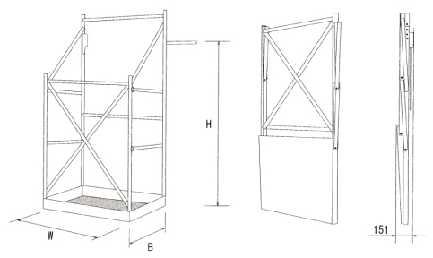 ●アルミ合金製で非常に軽量、燃え・錆等の心配がありません。 ●一人で移動、取付、取り外しが短時間で行えます。 ●ワンタッチ折り畳み式で、コンパクトです。 ●転用等には、重機等が不要で、工期の短縮と工費の削減に貢献します。 ●各部材とも、強固に設計され、安全荷重200kg・fに対し安全率は5倍です。